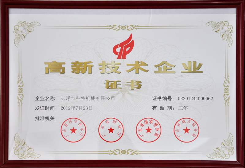 云浮市科特機(jī)械有限公司位于廣東省云浮市都楊高新區(qū)、佛山(云浮)產(chǎn)業(yè)轉(zhuǎn)移工業(yè)園,占地面積40000多平方米,是一家專業(yè)生產(chǎn)石材機(jī)械裝備的高新技術(shù)企業(yè)。